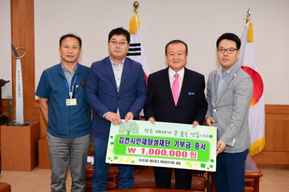 김천의 교육발전과 글로벌 인재육성을 위해 지난 9일 이지더원 에듀파크 예비입주자회에서 김천시인재양성재단(이사장 박보생)에 장학기금 일백만원을 기탁했다.