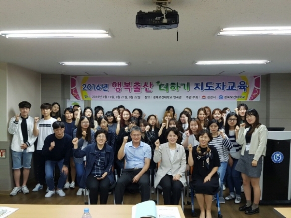김천시(시장 박보생)는 2016년 출산장려 사업의 일환으로 경북보건대학교와 연계하여 김천시 관내 대학생 114명을 대상으로 2016년 9월 21일부터 9월 22일까지 3일간 대학생 행복출산 더하기 지도자 과정 교육을 실시하였다.