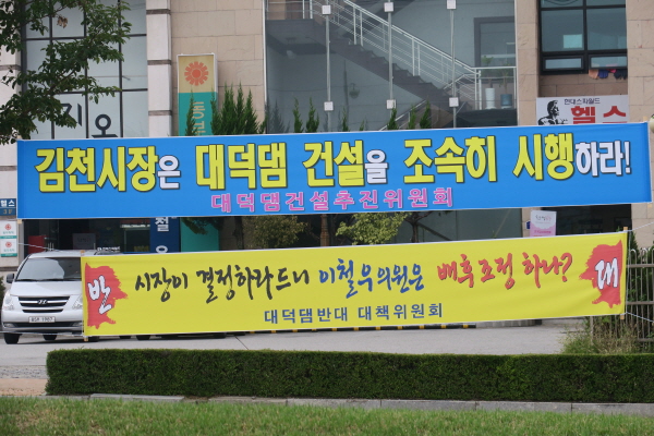 |  | | | ⓒ 김천내일신문 | | 김천시는 대덕면 홍수조절용 댐을 두고 수개월동안 집회와 시위를 거듭하고 있는 가운데 오는 11월경 최종 대책을 마련할 것으로 내다보인다. 최근 홍수조절용 댐을 두고 반대위원회와 찬성위원회가 극심한 마찰이 빚어지는 등 지역주민들의 갈등과 분열이 심화되고 있는 것으로 나타나고 있다. 이에 반대위원회는 김천시청 전정 화단에서 장기간 1인 시위를 하고 있어 잔디가 일부 고사되는 등 집회농성장소를 이철우 국회의원 사무소 앞에서 한다는 현수막을 내걸고 있으며 찬성위원회에서도 사업추진을 조속히 실행하라는 현수막도 거치되어있어 이를 보는 시민들은 곱지 않은 시선을 보내고 있다. 논란을 빚고 있는 대덕댐 건설은 당초 지역주민을 상대로 한 설명회 자리에서 홍수조절용 댐 개념의 건설로 설명되었다. 그러나 대덕댐은 그 규모가 저수지 수준에 불과하다는 것이 뒤늦게 밝혀졌다. 저수지는 2천만 톤 이하는 규정 상 농업기반공사에서 관리를 하고, 2천만 톤 이상은 한국수자원공사에서 관리하고 있다. 대덕면 홍수 조절용 댐은 1,650만 톤으로 김천시가 한국수자원공사로 사후관리를 위탁 할 계획이며 정부로부터 주변정비 사업비 등 혜택을 받을 수가 없다. 실 예로 부항댐은 5,400만톤으로 주변 정비 사업비 350여억원을 받았다. 그 당시 주변 정비 사업비는 면별로 공동수익사업 명목으로 일정액으로 배당을 하였지만 일부지역은 수년 동안 사업상 문제를 일어켜 해당업체에서 법정소송을 준비하고 있는 것으로 알려졌다. 당초부터 대덕댐은 사실상 저수지 수준이라는 것을 설명회자리에서 밝혀야 했음에도 불구하고 거대한 댐 수준이라고 설명회를 가져 오늘의 이심각한 사태를 초래했다고 분석되고 있으며, 또한 일부 지역주민들은 축사 신축 및 과수묘목식재 등으로 많은 보상비에 목적을 두고 있다는 의혹도 함께 일고 있는 상황이다. 댐을 두고 오가는 찬성과 반대의 목소리가 홍수조절에 그 의미를 두고 있는 건지 다시 한 번 생각해봐야 할 대목이다. 지난 2002년 ′루사′, 2003년 ′매미′, 2012년 ′산바′등의 태풍과 대규모 홍수로 인해 특별재난지역으로 선포되고 인명피해 및 이재민 7,000여명, 재산피해 5,000여 억 원 등 막대한 피해가 발생한 바 있다. 시에서는 더 이상의 홍수피해를 근원적으로 막고자 국토부에 대덕댐 건설을 건의하였고 국토부에서는 댐 필요성을 인정하여 ‘댐건설장기계획(’12)’에 반영했다. 국토부에서는 댐 사업 추진절차에 따라 ‘2013. 12월부터 ’2014. 6월까지 기술·경제·환경·사회 등 다양한 분야의 학식과 경험이 풍부한 민간위원과 지역위원을 포함한 댐 사전 검토회를 구성하여 댐 필요성을 검토했고, 김천시에서는 ‘2014년 9월 주민설명회, 시의회 의견 청취 등 지역의견 수렴 절차를 통하여 국토부는 댐사업 추진을 결정했다. 이후 기획재정부는 KDI에 의뢰하여 2년 동안 타당성검토를 거처 “사업계획 적정성 재검토(‘15.8)”에서 대덕댐 건설이 확정되어, 김천시에서는 한국수자원공사와 양해각서를 체결하고 타당성 조사를 착수하였으나, 조사과정에서 비 수몰지역 주민들을 중심으로 댐 반대위원회가 구성, 댐 추진을 조직적으로 반대하고 있어 현재 타당성조사는 중지된 상태이다. 반대측 주민들은 2010년 감천하천기본계획에서 부항댐과 하천준설사업만으로 하천제방이 안전함으로 대덕댐 건설이 필요 없음을 주장하고 있다. 그러나 반대측 주민들이 주장하는 바와 달리 ‘2010년 하천기본계획은 ’2012년 태풍 ‘산바’로 인해 증가된 홍수량이 고려되지 않은 상태고 가장 최근 KDI에서 검토된 사업계획 적정성검토에서는 태풍 ‘산바’를 반영, 홍수량을 재산정하여 검토한 결과 대덕댐이 필요한 것으로 검토됐다. 이에 김천시는 오는 11월 부산 국토지방관리청에서 감천 하천 기본계획 수립안을 재검토하여 학술용역 및 기술용역을 통해 타당성조사 최종 결과에 따라 댐 건설을 추진과 중단의 문제를 놓고 반대위원회와 건설추진위원회 양측위원회에 편향성이 전혀 없는 마무리를 짓겠다는 강경책을 내 놓았다. |