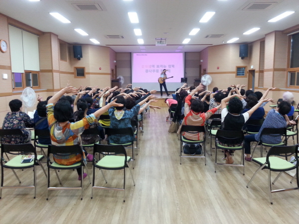 | 노래교실 프로그램은 수강인원보다 훨씬 많은 주민들이 신청을 하였으며 매번 약80명 이상의 주민들이 모여 뜨거운 열기를 자랑하고 있다.