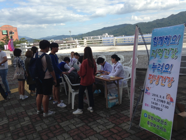 지역사회 연계사업의 일환으로 김천대학교 전정에서 진행된 『함께해요!지역건강! 누려요!평생건강!』사업이 9월 27일 종료되었다.