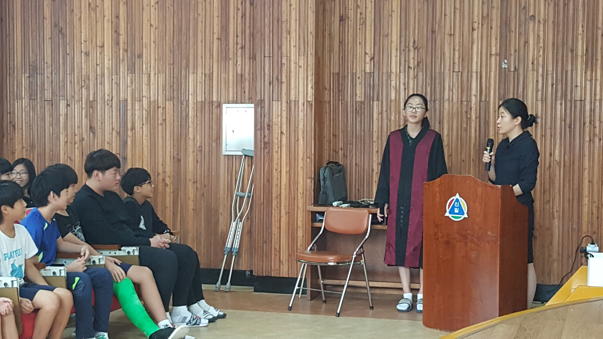 | 실제로 일어난 사이버 폭력 사례를 통해 가상세계에서 일어나는 폭력이 얼마나 큰 범죄이며, 실제로 어떤 처벌을 받는지 알아보는 시간을 가졌다. 또한, 학생이 검사복을 입고 실제 사이버폭력사례에 대해 변론을 해보면서 학생들에게 ‘검사’ 에 대한 흥미를 가지고, 사이버폭력을 예방할 수 있는 올바른 네티켓을 배웠다.