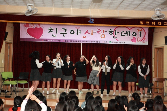 2016년 9월 22일 김천여자고등학교(교장 박경철)는 관심과 배려가 충만한 학교문화 조성을 위한 생명사랑 캠페인의 일환으로 ‘친구야 사랑한 데이’ 행사를 열었다.