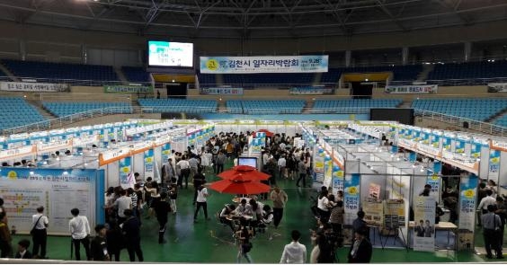 김천시(시장 박보생)가 9월 28일 김천실내체육관에서 개최한「2016년도 김천시 일자리 박람회」가 구인․구직자를 비롯한 학생과 시민 등 1천여명이 몰리면서 성황리에 마무리 됐다.