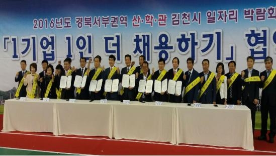 | 경상북도와 김천시, 고용노동부구미지청에서 공동으로 주최하고 경북경영자총협에서 주관한 이 날 박람회는 “1기업 1인 더 채용하기”라는 슬로건으로 31개의 구인 기업체와 해외취업상담, 이력서작성, 취업적성검사 등을 실시하는 부대행사를 포함해 전체 66개의 부스가 운영됐다
