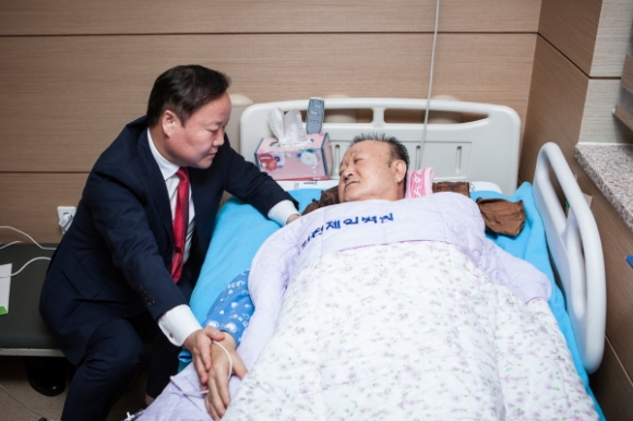 |  | | | ⓒ 김천내일신문 | | 김재원 청와대 정무수석이 휴일인 지난10월 2일 밤 늦게 김천 제일병원을 찾아, 성주 롯데CC 사드배치 반대 단식투쟁 중 탈진으로 응급 입원중인 박보생 김천시장을 직접 방문하고 대통령 위로의 뜻을 전했다.