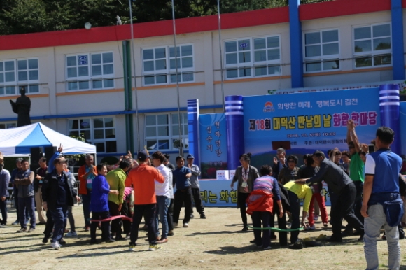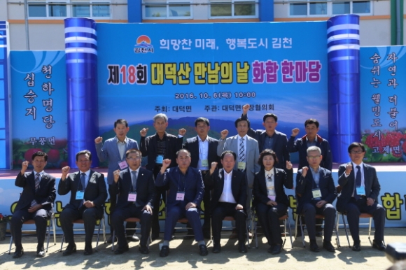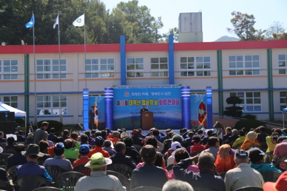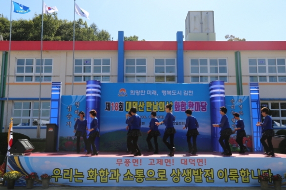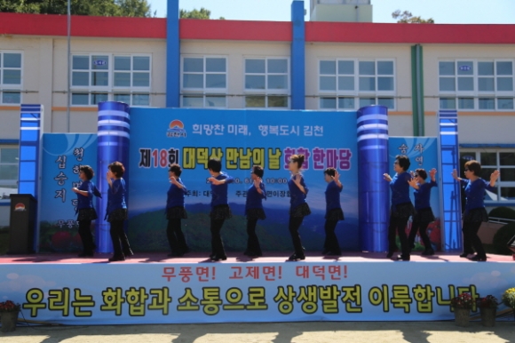 |  | | | ⓒ 김천내일신문 | | 김천시 대덕면 대덕초등학교에서 지난 10월 6일 기관단체장 및 주민들 100여명은 「제18회 대덕산 만남의 날」행사에 참가했다. 대덕산 만남의 날 행사는 대덕산을 중심으로 인접한 3도 3면(대덕면,고제면,무풍면) 주민들이 1998년 제1회 행사를 시작으로 매년 만남의 행사를 순번제로 개최함으로써 상호 인적, 물적 교류 및 동서화합의 장이 되고 있다. 이은숙 대덕면장, 이진화 시의원, 문희준 이장협의회장, 정태희 농협조합장을 비롯한 15개 기관단체장과 주민 100여명이 참석한 이날 행사는 대덕산을 인접하고 있는 경상북도 대덕면, 경상남도 고제면, 전라북도 무풍면의 3도 3면 주민들 300여명이 참가한 가운데 화기애애한 분위기 속에서 진행되었다.
