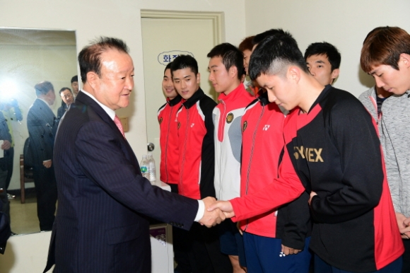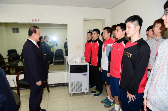 박보생 김천시장은 제97회 전국체육대회가 열리고 있는 경기장(당진 실내체육관)을 방문, 경북대표로 선발된 시청 소속 배드민턴 선수단을 격려했다.