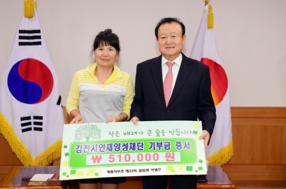이에 박보생 김천시인재양성재단 이사장은 “ 적은 돈이 아닐뿐더러 금액의 많고 적음이 중요한게 아니라 김천의 미래를 생각하는 마음이 중요하다며, 그 고마운 마음이 어렵게 공부하고 있는 학생들에게 희망의 등불이 될 것이다.”라며 감사의 인사를 전했다.