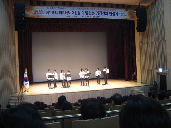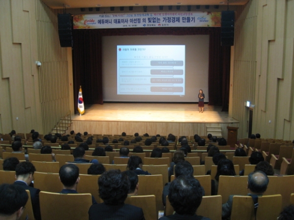 이어 재무전문가인 에듀머니 이선정 대표이사를 초청, ‘빚없는 가정경제 만들기’라는 주제로 강연을 했다. 내 지갑을 지키는 지혜와 건전한 소비방법을 인문학적 관점에서 알려주고, 아울러 치솟는 가계부채와 구조조정의 불안, 불안정한 노후 등 경제 삼중고를 슬기롭게 헤쳐나갈 방법을 전수해 주었다. 돈은 목적이 아니라 수단이며, 밥벌이의 공포에서 벗어나 돈에 얽매이지 않고, 돈을 통제하는 행복한 경제생활비법을 깨닫게 해주는 소중한 시간이 되었다.