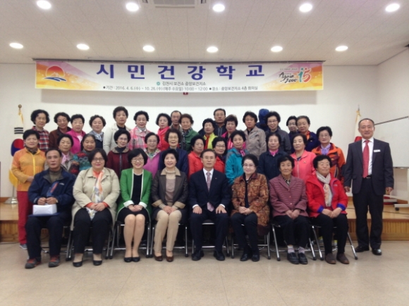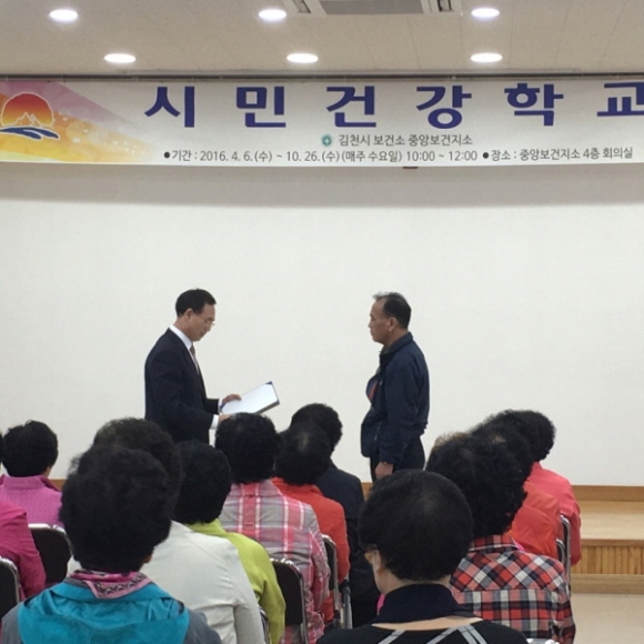 김천시에서 지난 4월부터 지역사회 건강증진 프로그램의 일환으로 운영된 시민건강학교가 2016년 10월 26일 종강식을 끝으로 성황리에 종료되었다.