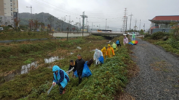 김천시 농소면(면장 이상배)이 지난 10월 28일 가을철을 맞아 농소면 신촌리 혁신도시 진입로(웅곡천 일대) 대청소를 실시했다.