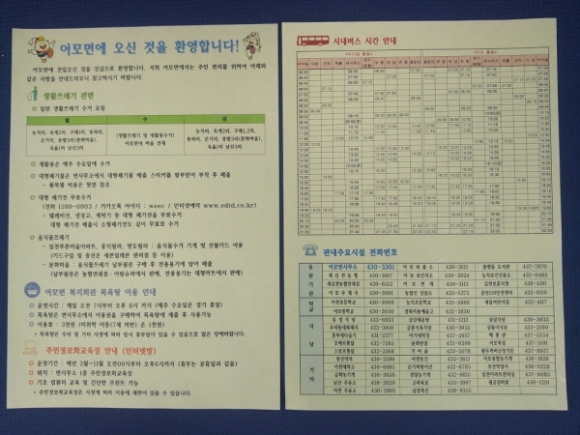 전입세대 생활안내문에는 쓰레기배출관련 안내 및 복지회관 목욕탕 이용안내, 시내버스 시간표, 관내 주요시설 전화번호 등을 포함하고 있어 어모에 금방 전입하여 환경이 익숙하지 않은 주민들에게 생활의 편리함을 줄 예정이다.