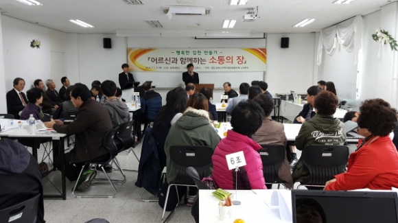| 『어르신과 함께하는 소통의 장』은 어르신들의 행복한 노후를 위해서 각계각층의 다양한 의견들을 수렴하고자 김천시가 주최하고 김천시지역사회보장협의체 노인분과가 주관하여 개최하였다.