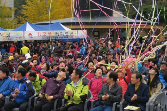 이날 송형근 매일신문사 부사장, 박보생시장, 배낙호의장, 이선명의원, 박희주의원, 나기보 도의원, 장태덕 교육장, 백남명 소방서장, 김충섭 경상북도 청소년수련원장을 비롯한 시민들, 혁신도시로 이전한 한국전력기술 임직원 50여 명을 비롯해 김천대 외국인 학생 30여 명, 문성중학교 학생 200여 명 등이 사명대사의 호국정신을 돌아보고 황악산 단풍을 즐겼다.