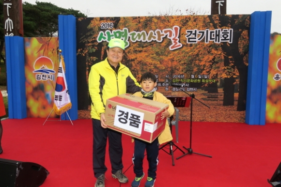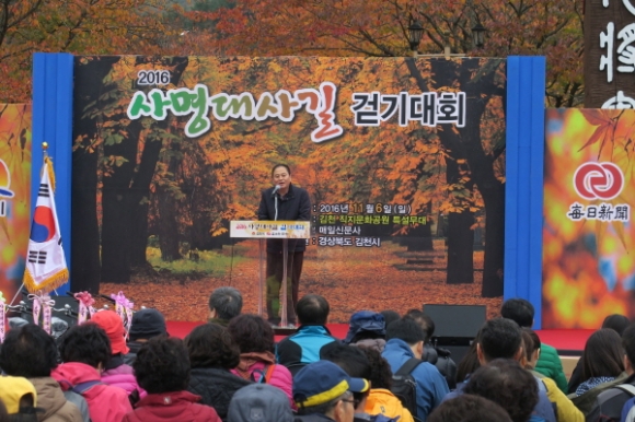 |  | | | ⓒ 김천내일신문 | | 김천시 대항면 장성공원에서 지난11월6일 매일신문사가 주관하는 “2016 사명대사길 걷기대회”가 성황리에 개최됐다.