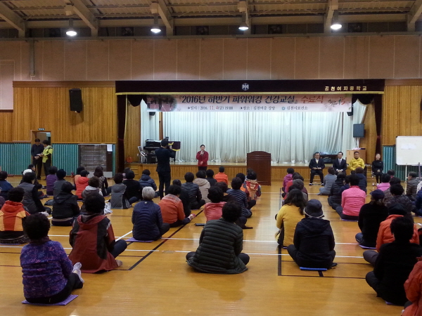 김천시(시장 박보생)에서는 더위에 지친 몸과 마음을 달래고 건강한 겨울을 나기 위한 단련으로 시작했던 『2016년 하반기 파워워킹 건강교실 수료식』을 11월 4일(19:00)김천여중 대강당에서 150여명이 참여한 가운데 성황리에 가졌다.