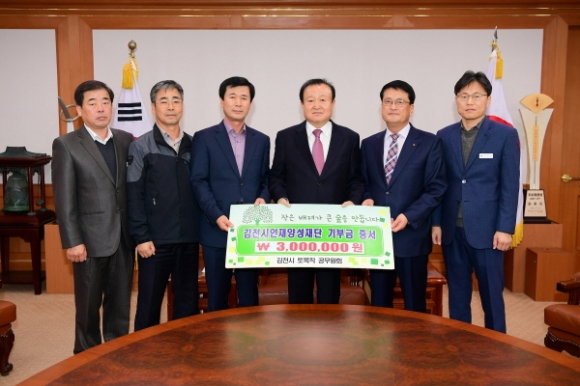 | 김천의 교육발전과 글로벌 인재육성을 위해 김천시 토목직 공무원회(김토회)에서 김천시인재양성재단(이사장 박보생)에 장학기금 삼백만원을 기탁했다.