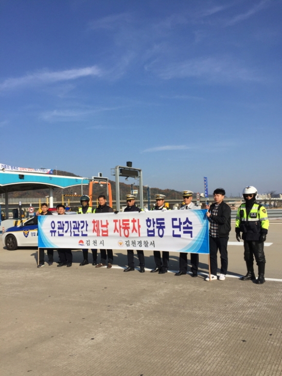 김천시(시장 박보생)는 전국 시군구와 합동으로 실시하는 ‘2016년 하반기 전국 번호판영치의 날’을 맞아 자동차 관련 지방세 및 세외수입 과태료 등 각종 체납액 징수 및 근절을 위하여 김천경찰서와 함께 2016년 11월 9일 체납 자동차 합동단속을 실시하였다.