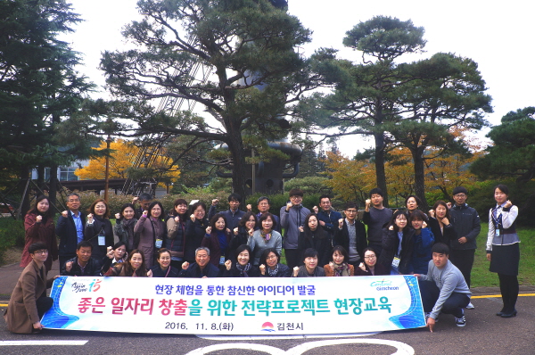 | 김천시(시장 박보생)는 지난 11월 8일 실과소 일자리업무 담당 공무원 40명을 대상으로 포스코(우수기업), 포항크루즈(사회적기업), 창조경제혁신센터(일자리창출) 현장을 벤치마킹하기 위한 “2016년 전략프로젝트 현장교육”을 실시했다.