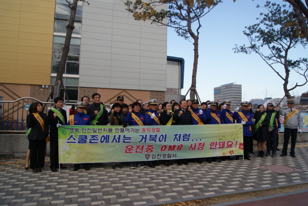 | 김천경찰서(서장 이창록)에서는, 11월 15일 오전, 김천 율곡초등학교 정문에서 경찰과 유관기관인 김천시청, 김천교육지원청을 비롯하여 모범운전자회, 녹색 어머니회, 율곡초등학교 교사 등 60여명이 참석한 가운데 어린이 교통안전을 위한 합동 캠페인을 실시하였다.