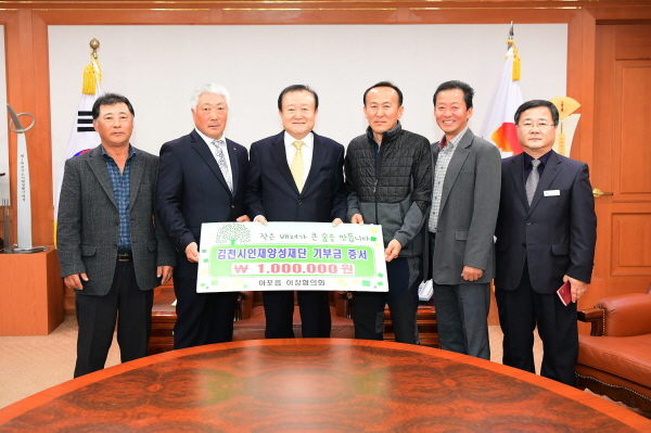 김천의 교육발전과 글로벌 인재육성을 위해 아포읍 이장협의회(회장 박희병)에서 김천시인재양성재단(이사장 박보생)에 장학기금 일백만원을 기탁했다.