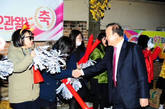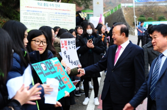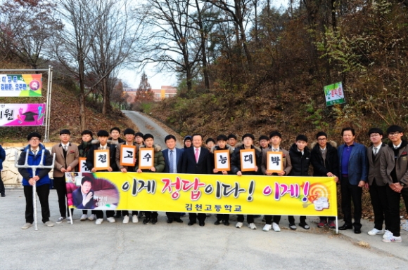 수능시험장 앞에서 “다 아는 문제다! 콕콕 찍어 만점으로 대학 합격” , “이게 정답이다!”, “우리가 원하는 건 수능대박”, “손길 가는 길마다 정답이 있길∼” 등 다양하고 익살스러운 문구를 새겨 넣은 피켓과 현수막을 들고 응원하는 출신학교 후배들의 열정 가득한 응원과 함성은 수험생과 학부모들의 긴장된 마음에 따뜻한 위안을 안겨주었다.