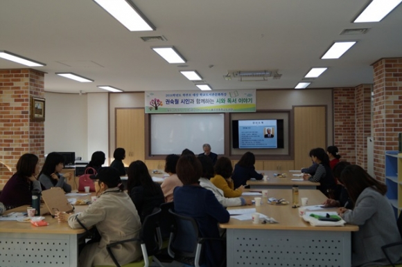 이번 특강에는 28명의 학부모가 참가하여 권숙월 시인과 함께 시를 함께 읽으며, 시의 의미를 새겨보는 시간을 가졌다. 권숙월 시인은 ‘시는 발견이고 깨달음이다.’이며, 어휘가 쉽고 외워서 낭독 할 수 있어야 한다며, 좋은 시에 대해 정의하였다.