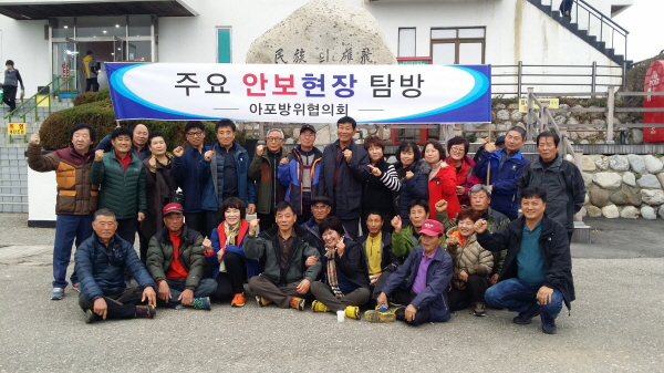아포읍방위협의회(회장 정경식)는 회장을 비롯한 회원 30여명이 지난 11월 18일 강원도 통일전망대에 방문하여 아픈 역사를 되새기고 안보의 중요성을 다시 한번 결의하는 시간을 가졌다.