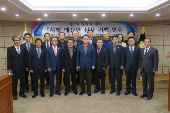 |  | | | ⓒ 김천내일신문 | | 김천시의회(의장 배낙호)는 11월21일 문화예술회관 국제회의실에서 집행부를 견제하는 의결기관으로서 2017년도 당초예산안 심사와 관련한 연수회를 가졌다.