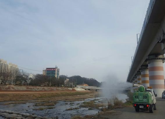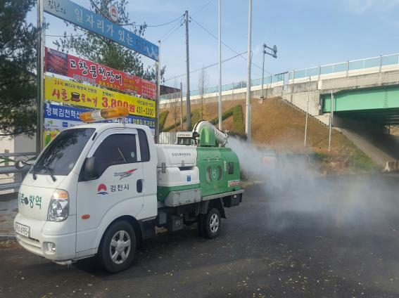 발생 원인으로 지목되고 있는 야생철새방역을 위해 관내 야생조류 서식지(감천, 직지사천)주변과 방역취약지구인 가든형 식당, 소규모 가금사육농가, 전통시장 등을 주2회 이상 김천축협 공동방제단 및 시 방역차량을 동원하여 중점적으로 소독을 실시하고 있다.