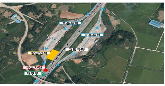 훈련 중 부안주차장 앞 1.0km 구간은 양방향 본선통행이 차단된다. 훈련시간대 이 구간을 이용하는 차량은 부안주차장 광장부를 우회하여 통행할 수 있다.
