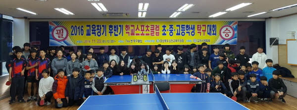 |  | | | ⓒ 김천내일신문 | | 김천교육지원청(교육장 장태덕)은 2016 교육장기 후반기 학교스포츠클럽 배드민턴, 탁구, 풋살경기을 김천생명과학고 외 2곳 경기장에서 개최하였다.