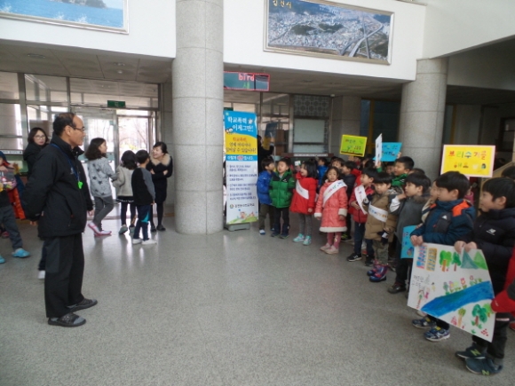 | 김천동신초등학교병설유치원(원장 이형석) 원아 46명(파란하늘반 21명, 하얀구름반 25명)이 11월 25일 ‘깨끗한 우리 유치원 만들기’ 환경캠페인 활동에 참여했다. 환경캠페인 활동은 유치원 교육과정 생활주제인 ‘환경과 생활’과 연계하여 이루어졌으며 어린이들이 환경오염 문제에 관심을 갖고 생활 속에서 환경보호를 실천하도록 하는 것에 그 목적을 두었다.