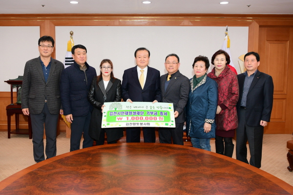 김천의 교육발전과 글로벌 인재육성을 위해 김천향토봉사회(회장 이복상)에서 김천시인재양성재단(이사장 박보생)에 장학기금 일백만원을 기탁했다.