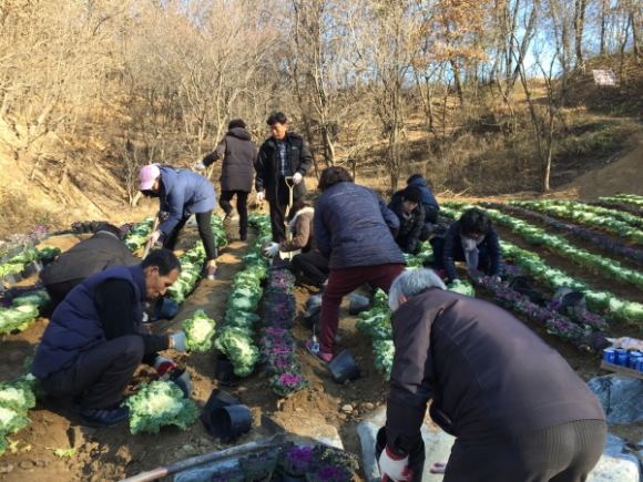 | 율곡동 (동장 이상재)은 지난 29일 율곡동 산3-114일원에 꽃양배추 1,300본을 식재하여 꽃밭을 조성했다. 이른 아침부터 율곡동 직원과 통장협의회(회장 손년숙) 회원들이 20여명 참석하여 율곡동 첫 꽃밭조성에 힘을 보태었다.