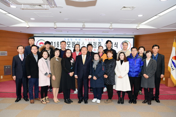 | 김천시(시장 박보생)는 11월 29일(월) 위생관리상태 등이 우수하여 올해 신규 모범음식점으로 선정된 18개 일반음식점 대표자에게 모범음식점 지정증을 수여하였다.
