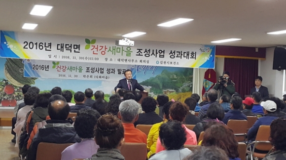 | 김천시(시장 박보생)에서는 2016년 11월 30일(수)15:00 대덕면건강위원, 관계기관장, 지역주민 150여명을 모시고 건강새마을조성사업성과대회를 개최하였다.