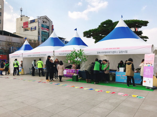 | 이날 행사는 김천시를 비롯하여 김천경찰서, 경북서부해바라기센터, 여성긴급전화1366경북센터, 김천구미범죄피해자지원센터, 김천시건강가정․다문화가족지원센터, 김천시여성단체협의회 등 많은 기관 단체들이 동참하였다.