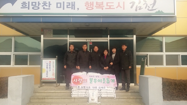 삼봉석유(대표 김세겸)는 5일, 김천시 감문면의 취약계층 지원을 위한 백미 310kg(10kg 31포)을 전달했다.