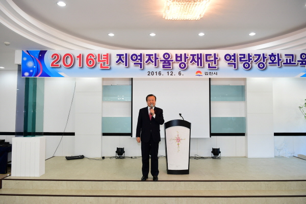 김천시(시장 박보생)는 12월 6일 김천컨벤션웨딩에서 자율방재단원 200여명이 참석한 가운데 지역자율방재단 역량강화교육을 실시하였다.