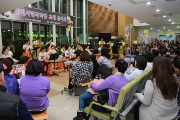 ‘ |  | | | ⓒ 김천내일신문 | | 김천시립국악단의 찾아가는 음악회’가 지난 9일 김천의료원(원장 김미경) 1층 로비에서 환자와 가족, 일반 시민 100여 명이 지켜보는 가운데 펼쳐졌다.