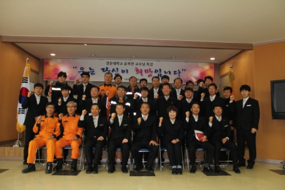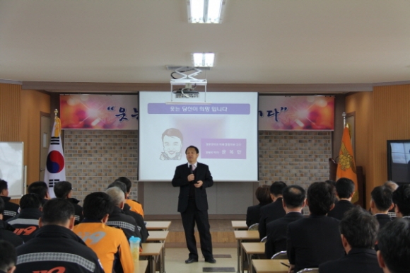 이날 3층 회의실에 김천소방서 직원 100여명이 참석한 가운데 경운대학교 윤복만 교수의 【웃는 당신이 희망입니다】라는 주제로 2시간 동안 직장과 가정생활에서 스트레스를 어떻게 해소하고 직원 상호간 웃음으로 공감하고 소통하는 방법 및 긍정적인 자세에서 얻을 수 있는 신체의 변화 등에 대하여 강의하였다.