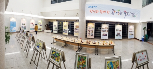 | 이번 전시회는 2016년 한해를 마무리하며 1년 동안 추진한 독서문화활성화 프로그램의 성과를 되짚어보고, 시민들의 공감대 형성과 문화충전의 기회를 제공하고자 마련한 것으로, 그동안 도서관 프로그램에 함께 한 시민들의 사진과 문화강좌에 참여한 어린이들의 활동 작품 및 <2016 독후감상화 공모전> 수상작 등이 전시된다.