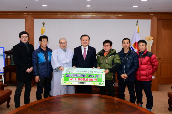 김천의 교육발전과 글로벌 인재육성을 위해 다행복회(회장 이병근)에서 김천시인재양성재단(이사장 박보생)에 장학기금 일백만원을 기탁했다.