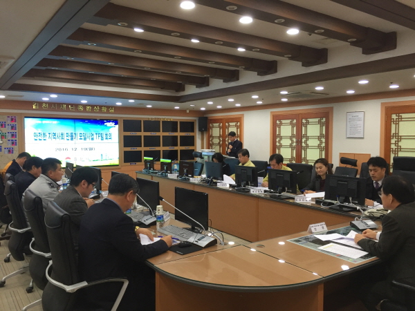김천시(시장 박보생)는 12월 19일 김천시 재난종합상황실에서 TF팀 단장(부시장)과 도로교통공단 전문가 등 14명이 참석한 가운데 회의를 개최하고 국민안전처에서 시행한 공모사업으로 추진중인 안전한 지역사회 만들기 모델사업에 대한 성공적 추진 의지를 다짐하는 시간을 가졌다.