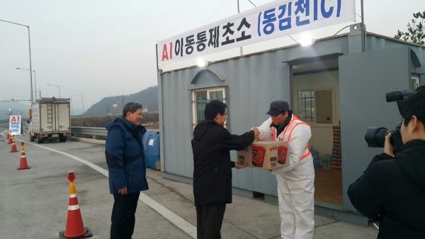김천시(시장 박보생)는 김천축협 전자경매시장에 거점소독시설을 설치하여 축산 관련 차량을 대상으로 철저한 소독을 하고 있으며 외부진입 고속도로인 『김천IC』와 『동김천IC』2개소에 이동통제초소를 추가 설치해 24시간 운영에 들어갔으며, 인접시군에 AI 발생 시, 이동통제초소 추가 설치를 검토하고 있다.