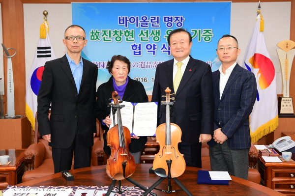 ‘동양의 스트라디바리’라 칭송되는 김천 출신의 세계적인 바이올린 명장(名匠) 故진창현(陳昌鉉, 1929~2012) 선생의 유품 기증 협약식이 21일 김천시청 접견실에서 열렸다.