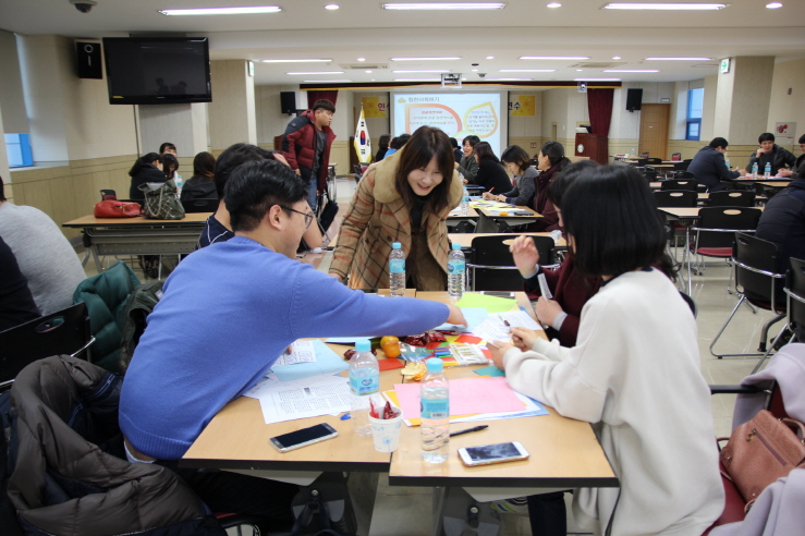 연수에 참여한 교사들은 4인 1조의 모둠을 구성하여 마음비우기, 마음관리 활동으로 감정을 붙임딱지에 적어 붙이는 활동을 하였다. 붙임딱지에서 감정을 찾아 읽으며 상대의 감정에 추임새를 넣고 서로의 기분에 대해 피드백 하는 활동으로 서로의 감정을 나누는 활동에서 자신의 반성과 상대에 대한 공감을 경험하였다.