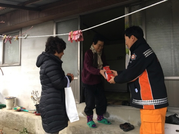 | 이날 소화기 보급에는 연말연시 바쁜 와중에도 김천여성의용소방대원(대장 박세자)들이 함께 참가하여 기초생활수급대상자분들께 소화기를 나눠드리는 뜻깊은 시간을 가졌다.